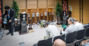 Fostex was showing its GX250MG speakers with Accuphase electronics at the Tokyo International Audio Show. These have a midrange and woofer in Fostex’s “HR shape” which they say pre-stresses the diaphragm making is resistant to deformation.