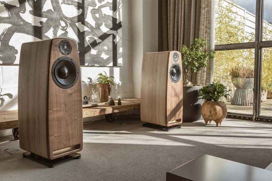 Elegant wooden floor-standing speakers with abundant, crystal-clear sound